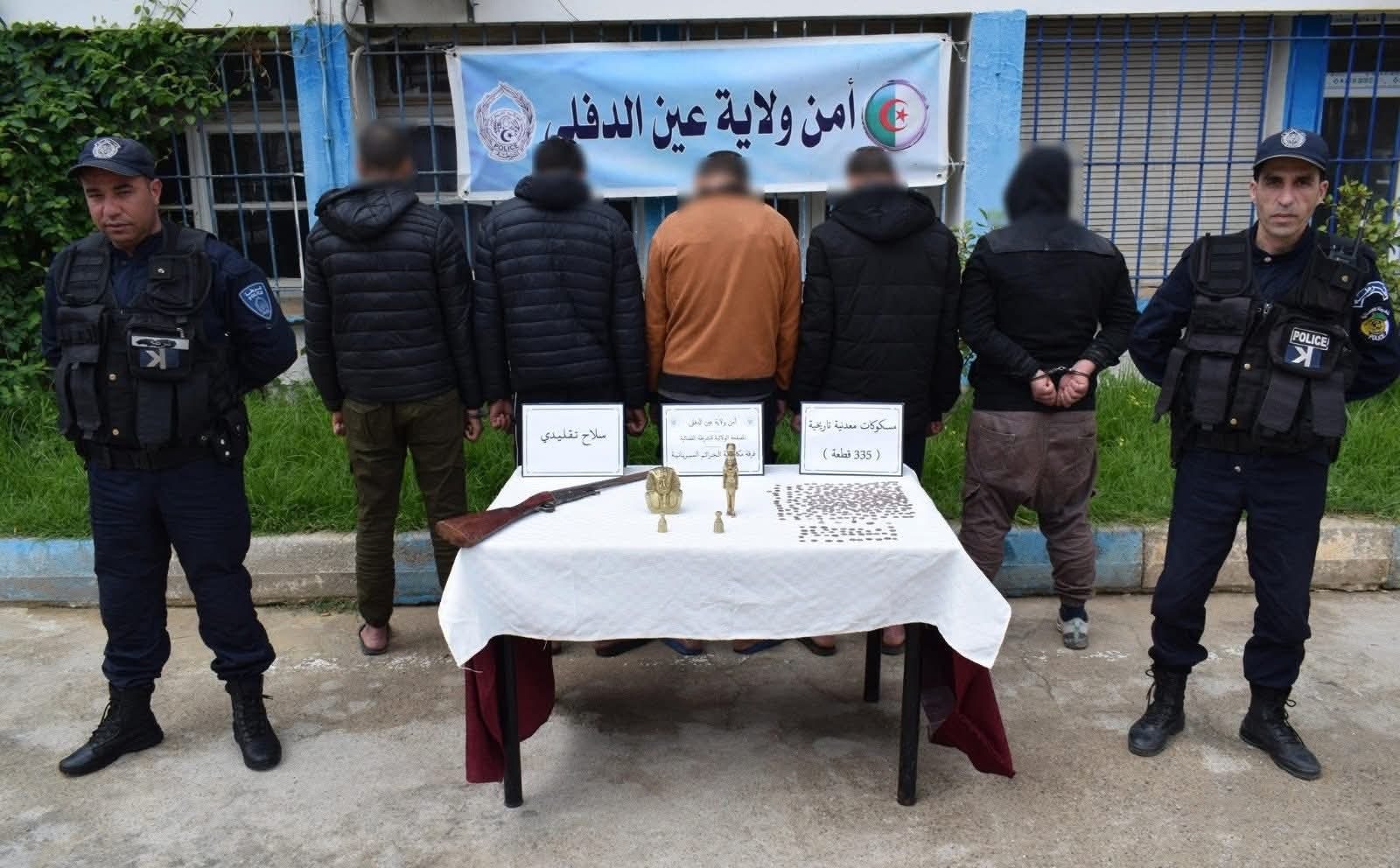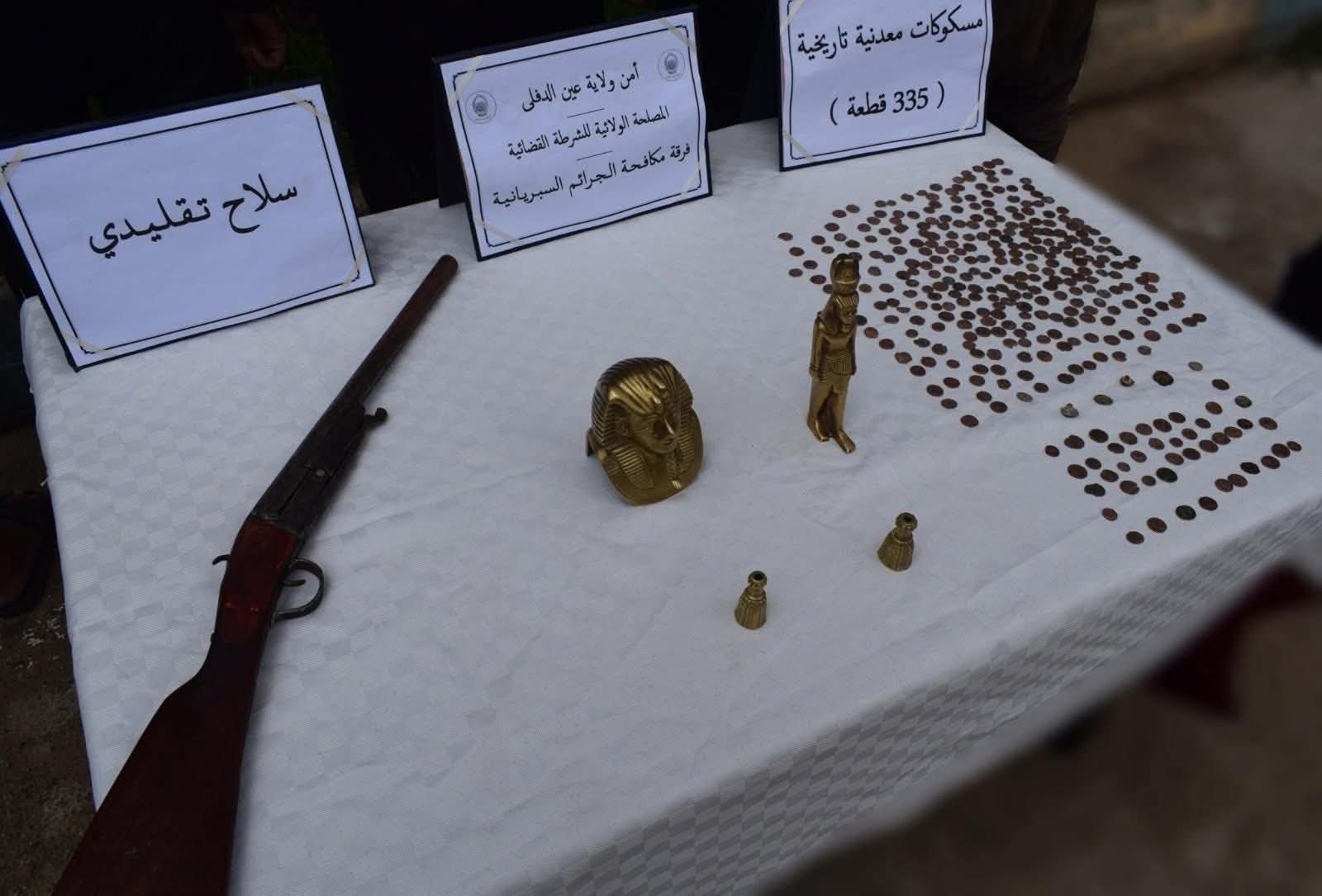 تمكنت شرطة عين الدفلى من توقيف 5 أشخاص وضبط 335 قطعة نقدية أثرية، سلاح ناري تقليدي وتماثيل فرعونية.