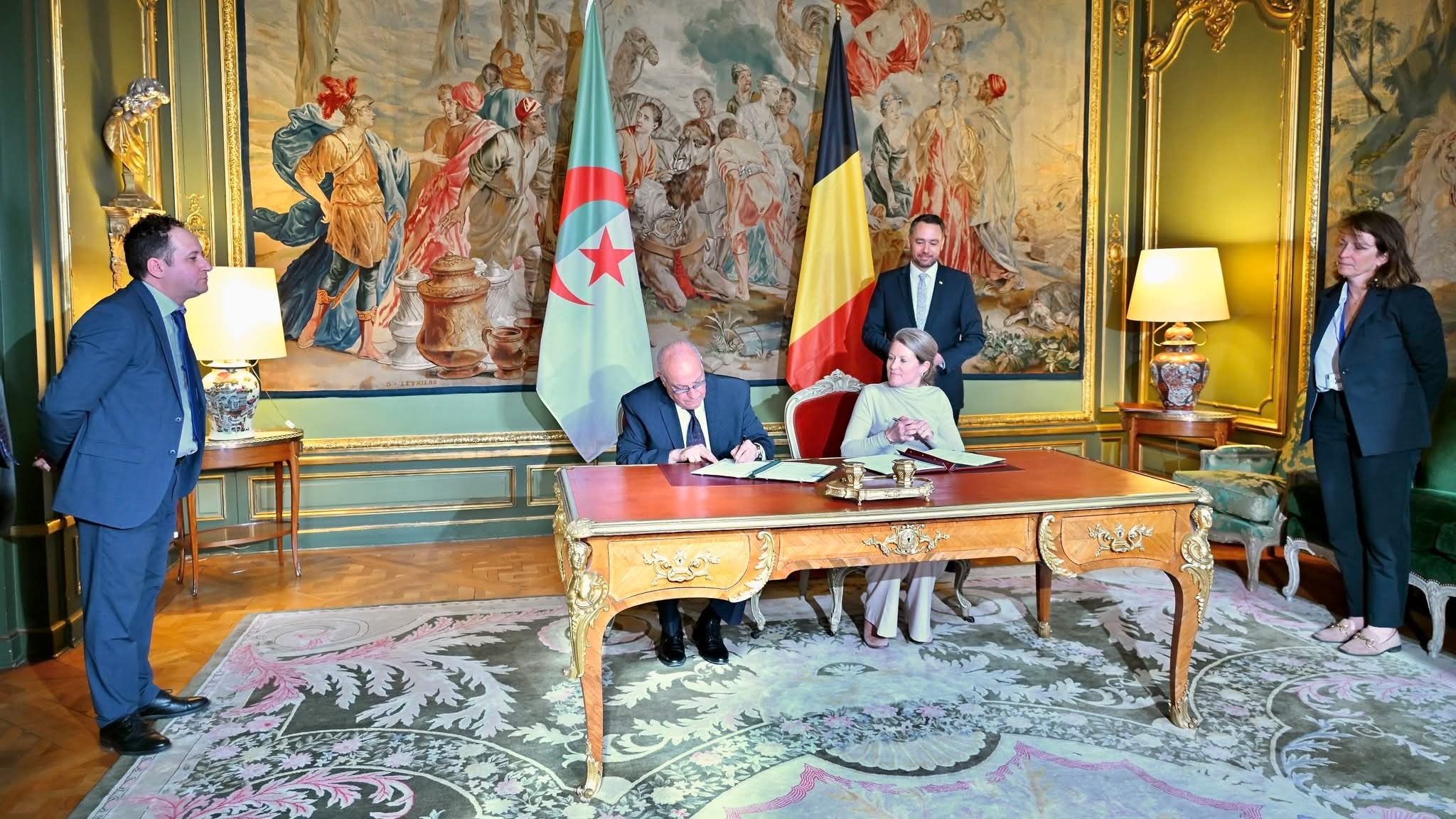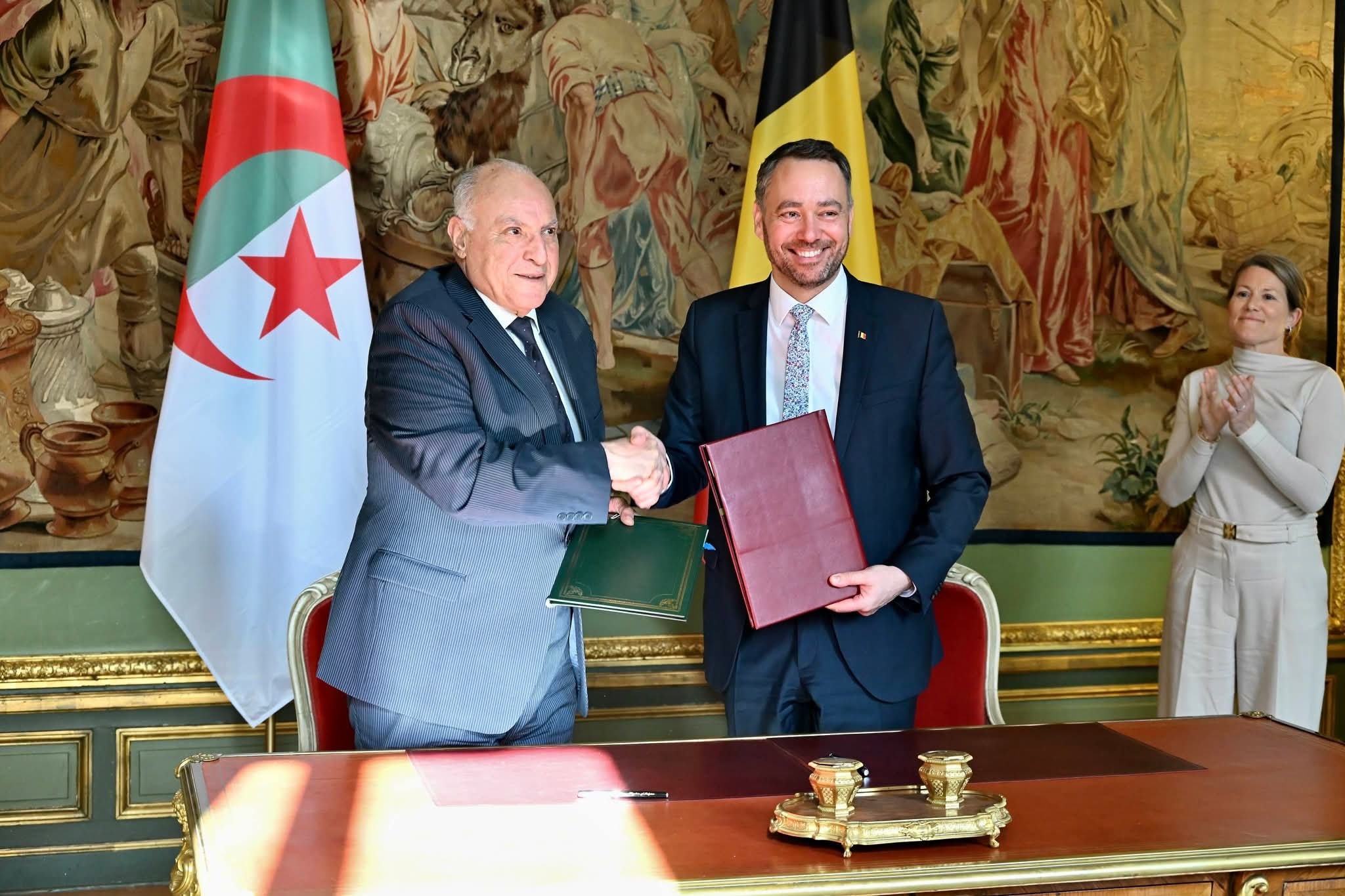 وفي ختام المحادثات، قام وزير الدولة بالتوقيع على اتفاقين يندرجان ضمن جهود تعزيز الإطار القانوني للعلاقات الجزائرية-البلجيكية، يتعلق أولهما بإعفاء حاملي جوازات السفر الدبلوماسية من متطلبات التأشيرة، فيما يخص الثاني حركة الأشخاص بين البلدين.