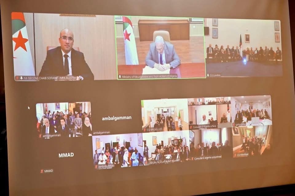 أشرف اليوم كاتب الدولة لدى وزير الشؤون الخارجية، المكلف بالجالية الوطنية بالخارج، سفيان شايب، بمعية زميله في الحكومة، وزير المجاهدين وذوي الحقوق، عبد المالك تاشريفت، على لقاء نُظم عبر تقنية التحاضر عن بُعد، مع عدد من رؤساء البعثات الدبلوماسية والقنصلية الجزائرية، بمشاركة أفراد من الجالية الوطنية المقيمة بالخارج، وذلك في إطار إحياء ذكرى يوم الشهيد، المصادف لــ 18 فيفري من كل سنة.