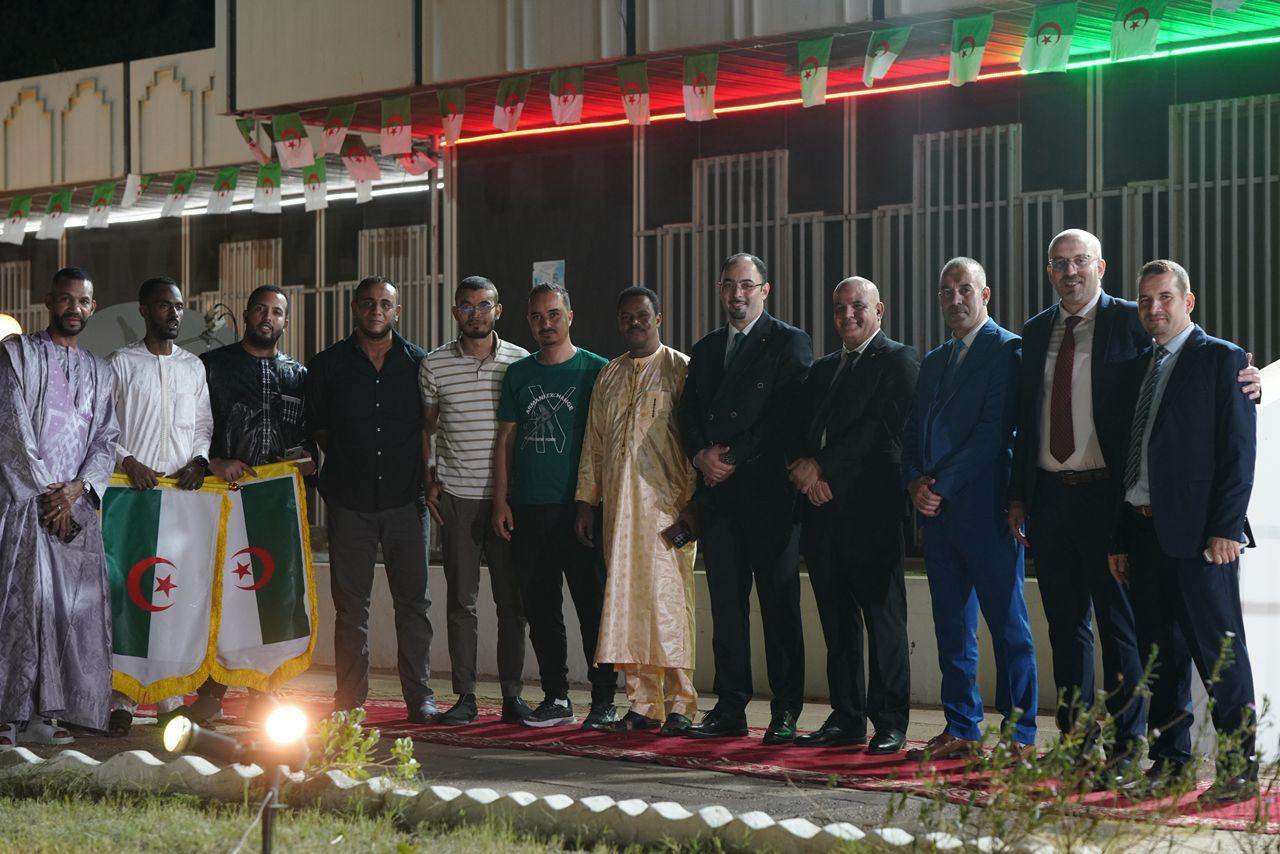 واختتم الحفل بأجواء جزائرية أصيلة، حيث أقيمت مأدبة عشاء تقليدية جمعت أبناء الجالية على نكهات الوطن، قبل أن تُختتم الاحتفالية بعرض موسيقي مميز أحيته فرقة فنية من تمنراست، قدّمت وصلات تراثية تمزج بين عمق الجنوب الجزائري ونبض الهوية الوطنية.