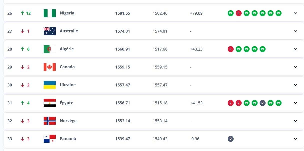وسجل “الخضر” قفزة معتبرة بارتقائهم 6 مراتب دفعة واحدة، ليحتلوا المركز الـ28 عالميًا، والرابع على المستوى القاري، مستفيدين من النتائج الإيجابية التي حققوها في الفترة الأخيرة.