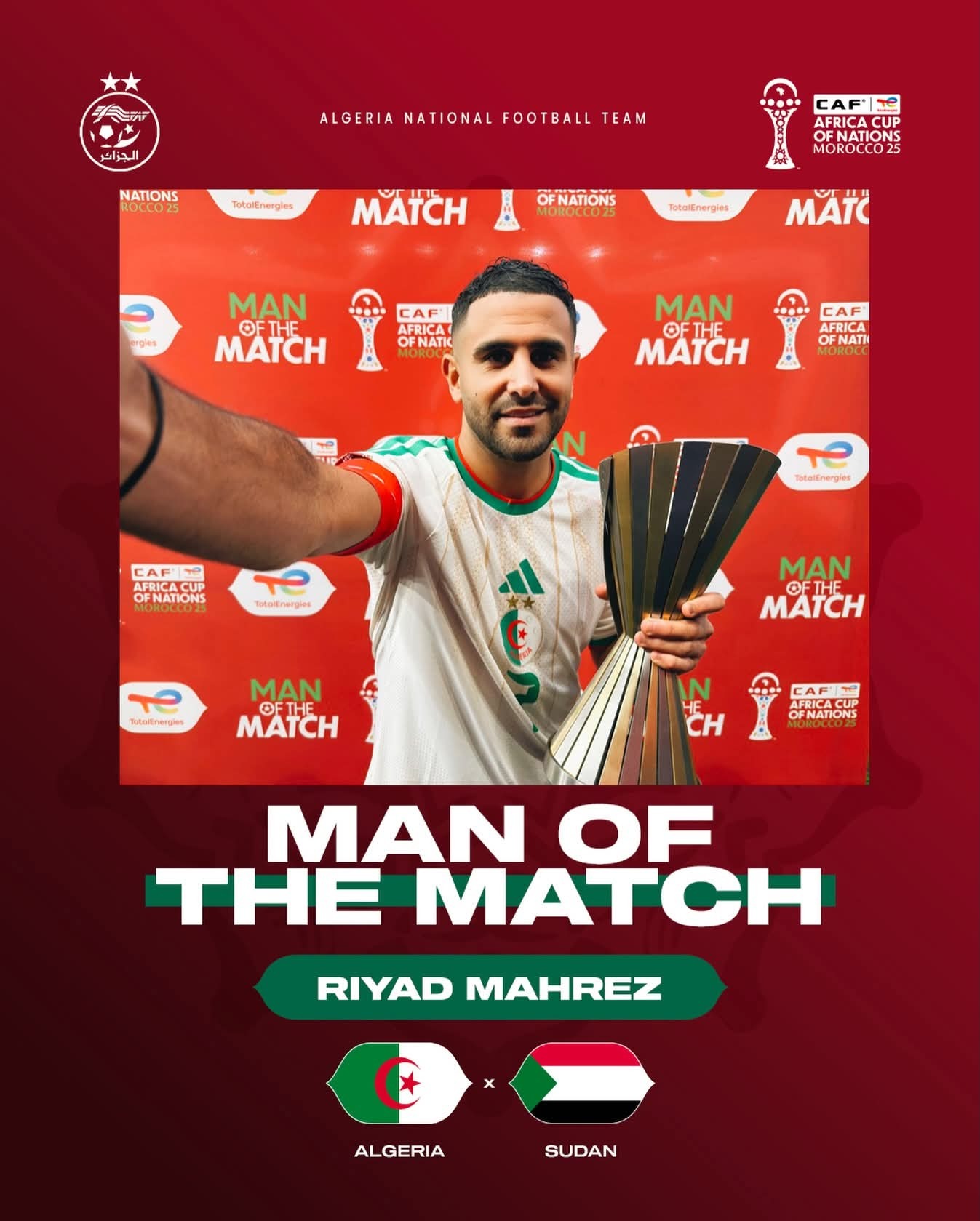 نال قائد المنتخب الوطني رياض محرز مساء الأربعاء، الجائزة الفخرية “رجل مباراة” الجزائر والسودان.