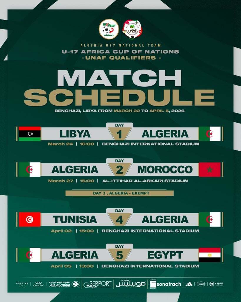تعرف المنتخب الوطني لأقل من 17 عاما، على برنامج مبارياته في الطبعة المقبلة من دور “لوناف” 2026، المقررة بمدينة بنغازي الليبية.
