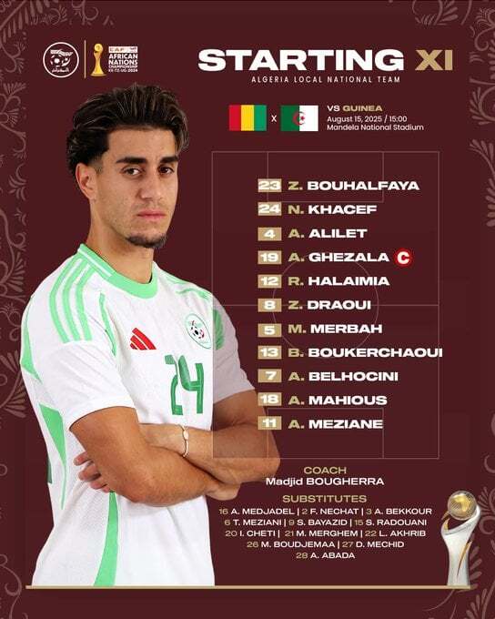 كشف مدرب المنتخب الوطني للمحليين، مجيد بوقرة، التشكيلة الأساسية التي سيعول عليها اليوم الجمعة، في مباراتهم ضد غينيا، لحساب بطولة “الشان”.