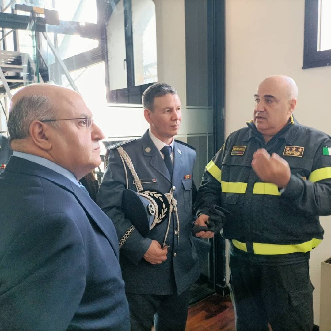 وأوضح المصدر نفسه، أنه في إطار برنامج الزيارة الرسمية التي يقوم بها العقيد بوغلاف، إلى الجمهورية الإيطالية، تنقل رفقة نظيره الإيطالي مانينو، و الوفد المرافق لهما و سفير الجزائر لدى ايطاليا،محمد خليفي، إلى المعهد العالي لمكافحة الحرائق، أين جرت مراسم التوقيع على مرسوم إنشاء فريق عمل لتنفيذ مذكرة تفاهم ثنائية.