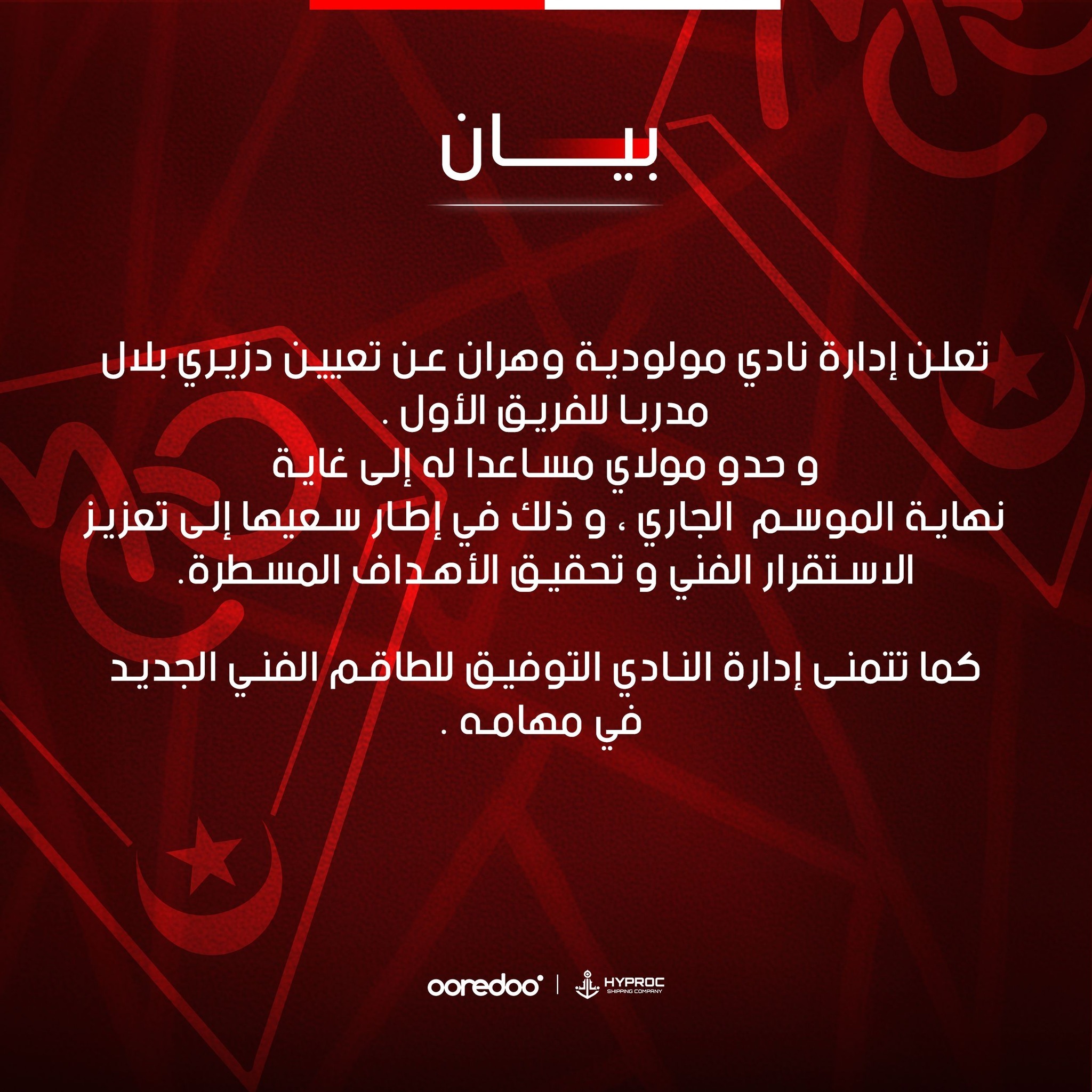 أعلنت إدارة نادي مولودية وهران، اليوم الأربعاء، رسميا عن تعيينها دزيري بلال، على رأس العارضة الفنية للفريق، خلفا للاسباني خوان كارلوس غاريدو.